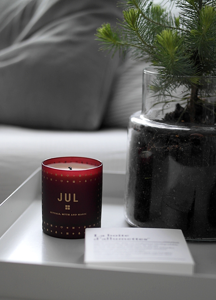 Kahdeksan yötä jouluun ja sen kunniaksi uskalsin vihdoin ottaa käyttöön nougatista ostamani Skandinavisk Jul - kynttilän. Olen hulluna tuoksukynttilöihin, etenkin juuri näihin. Tuoksuvat niin mielettömän hyvälle ja tämä punainen tietysti joululle. Esteetikkona en voinut vastustaa näitä kauniita tulitikkuja, jotka nekin nougatin valikoimaa. Niitä pitää mielellään esillä huomioiden tietysti sen, ettei lapset vaan pääse niihin käsiksi. Meillä on miehen kanssa pitkästä aikaa lapsivapaata nyt viikonloppuna ja ensi viikolla mies pitääkin isävapaata vielä ennen kun kuopus täyttää sen kaksi vuotta. Hyvillä mielin siis kohti joulua. Ihanaa viikonloppua kaikille.